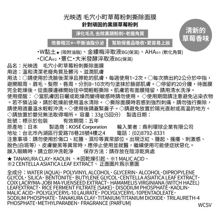 光映透 毛穴小町草莓粉刺撕除面膜
