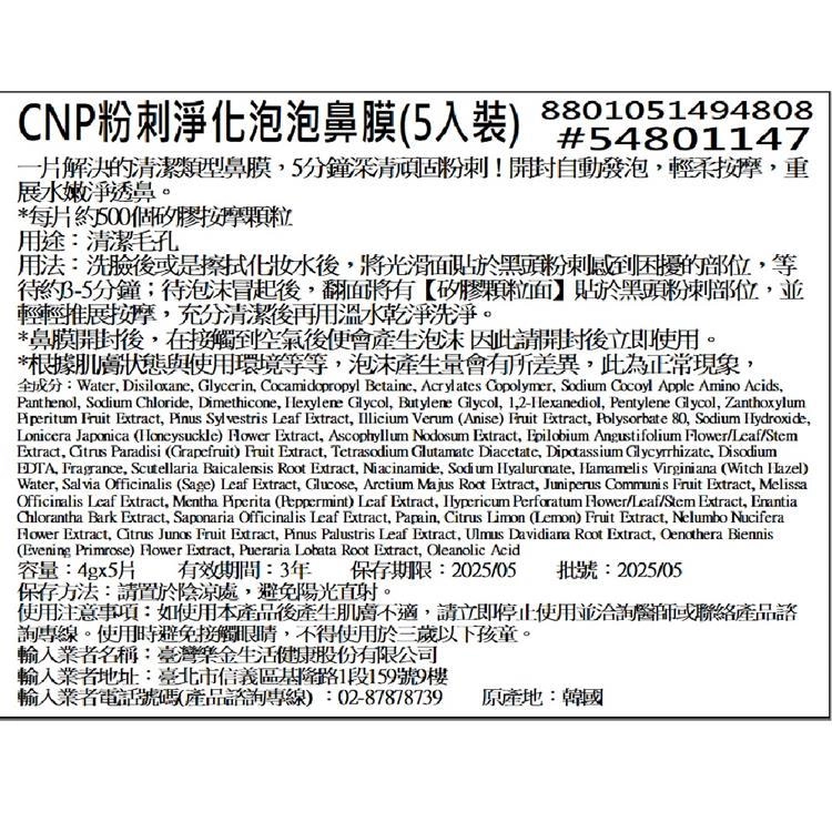 這款CNP粉刺淨化泡泡鼻膜適合用於清潔毛孔與黑頭粉刺,建議每次使用時將光滑面貼於鼻部3-5分鐘,待泡沫產生後翻面以矽膠顆粒輕柔按摩,再用溫水洗淨。使用頻率不宜過高,建議每週1-2次即可,避免過度清潔導致皮膚乾燥。使用前若擔心過敏,可先在手腕內側進行24小時皮膚測試。產品開封後會自動發泡,請立即使用,並儲存於陰涼乾燥處,避免陽光直射。敏感肌膚、孕婦或三歲以下兒童不建議使用。