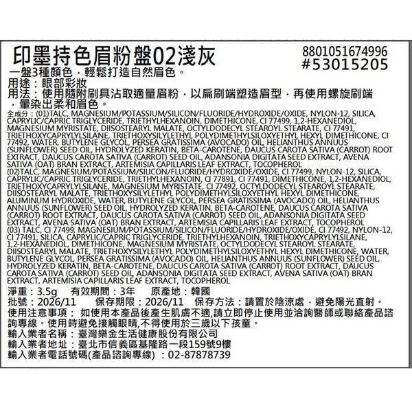 印墨持色眉粉盤02淺灰