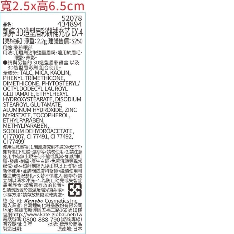 用 cosGlint 肌智 AI 來分析 3D造型眉彩餅補充芯 EX-4 【亮棕系】適不適合你,一款用於彩飾眼部及眉部的多功能眉彩餅,可作為眉粉、眼影及鼻影使用。;多功能用途:可用於眉毛、眼影及鼻影;搭配專用眉彩餅盒及眉刷使用,效果更佳;亮棕系色調,適合自然妝容