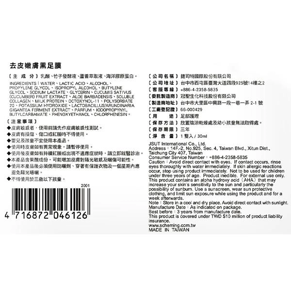 這款去皮嫩膚黑足膜適合用於足部護理,但由於含有果酸(乳酸)及部分潛在刺激成分,建議使用前先在手腕內側進行皮膚敏感性測試,等待24小時確認無不適再使用。使用時避免接觸傷口或紅腫部位,每次使用後需做好防曬措施,避免陽光直射,並於一週內限制足部暴露於陽光下。產品不適合三歲以下兒童及敏感肌膚者使用,建議存放於陰涼乾燥處,遠離幼童。