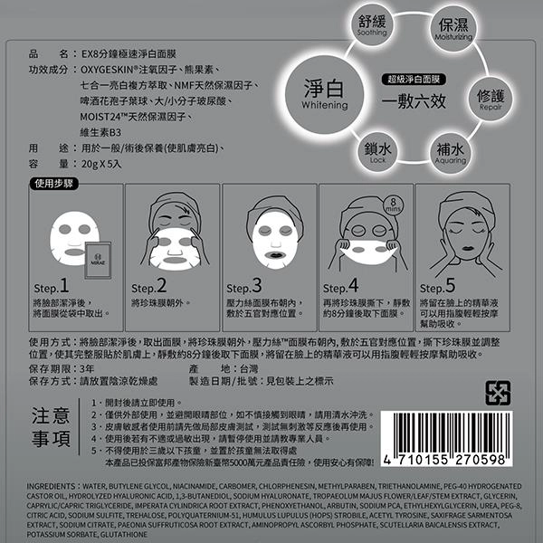 EX8分鐘極速淨白面膜