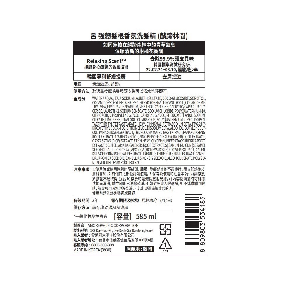 用 cosGlint 肌智 AI 來分析 RYO 呂 強韌髮根香氛洗髮精麟蹄林間585ml適不適合你,強調清潔頭皮與強韌髮根的香氛洗髮精,訴求去除頭皮異味、去屑與控油,含多種植萃與常見洗淨/護髮成分,並標示舒緩搔癢相關專利與放鬆香氛技術。;主打強韌髮根、清潔頭皮與去屑控油;含多種植物萃取與人參、米、薑等成分;含香氛與薄荷成分,提供清涼與放鬆感受