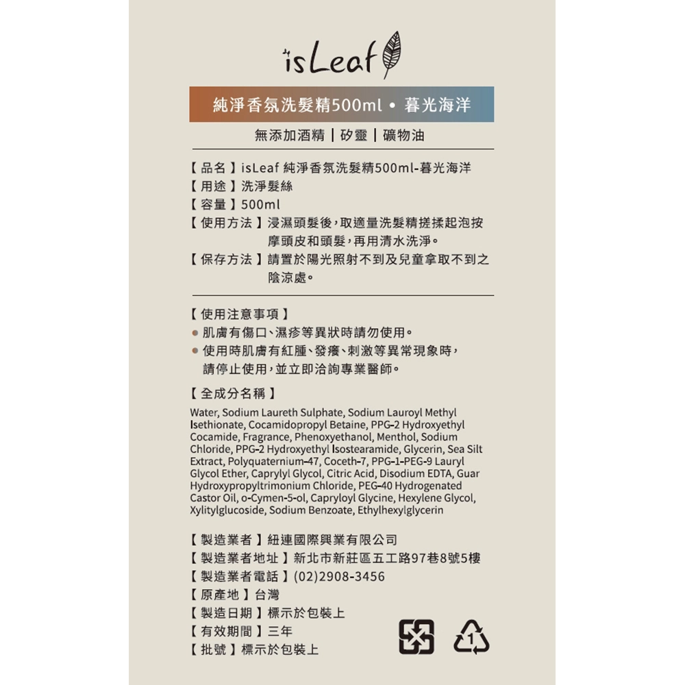 isLeaf純淨香氛洗髮精500ml-暮光海洋(涼感控油+冰河水)